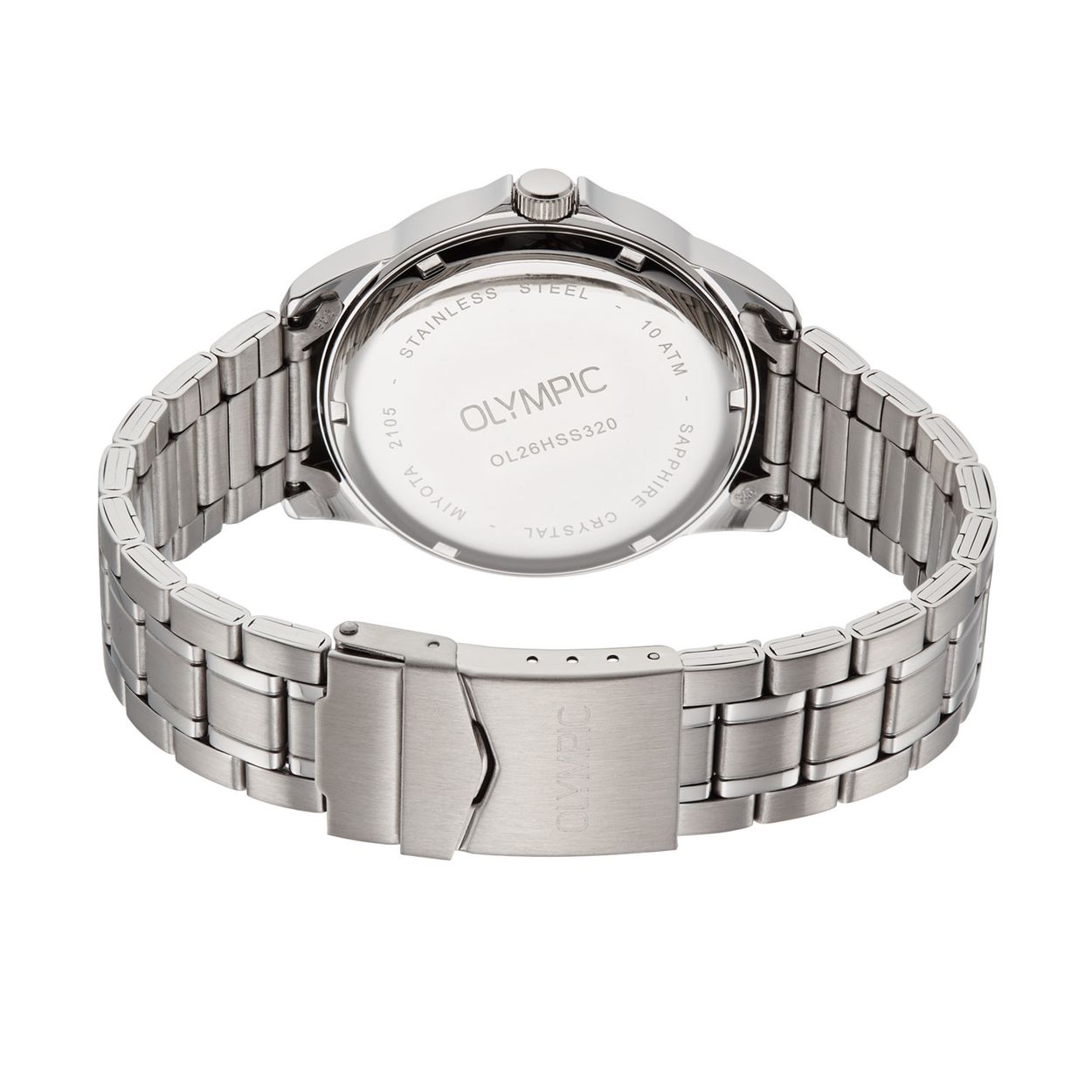 Dit unieke Olympic horloge met artikelnummer: OL26HSS320 is een herenhorloge met een classic sportieve uitstraling. Het horloge heeft een ronde stalen kast met een zilverkleurige wijzerplaat met uurstrepen en lumibrite op de wijzers. Aan de kast zit een stalen mat glanzende schakelband met vouwsluiting. Het horloge heeft een saffierglas, een doorsnee van 41mm en is 10ATM. Handig met dag en datum.